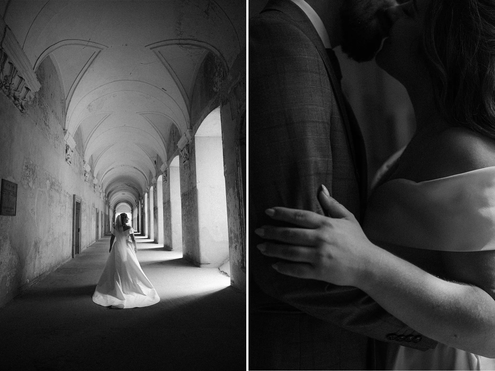 Wybór tego miejsca na sesję ślubną był najlepszą decyzją, chociaż do pokonania mieliśmy ponad 300 km! Opactwo Cystersów w Lubiążu to naprawdę wyjątkowe miejsce. Piękno, historię i majestat tego obiektu widać w każdym zakątku. Kamienne mury, mistyczne światło przenikające przez witraże, spokojna atmosfera. To wszystko stworzyło idealne tło do uchwycenia najpiękniejszego – miłości Gosi i Bartosza.
